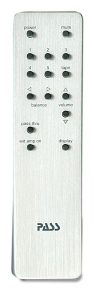 The front panel has a large volume control and a display friendly to read from across the room. Pass provides a simple, efficient aluminum remote that matches the casework of their other products, and this too is easy to use. The volume control has a wide range of operation, so even the most sensitive power amplifiers will have ample volume control range.